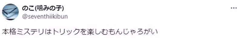「我看推理小說的時候,也常常會覺得『你用來實現目的的手段未免太奇怪了吧』之類的。推理小說迷是不是只會在乎謎題本身,不會在乎人類的行動自不自然呢?」