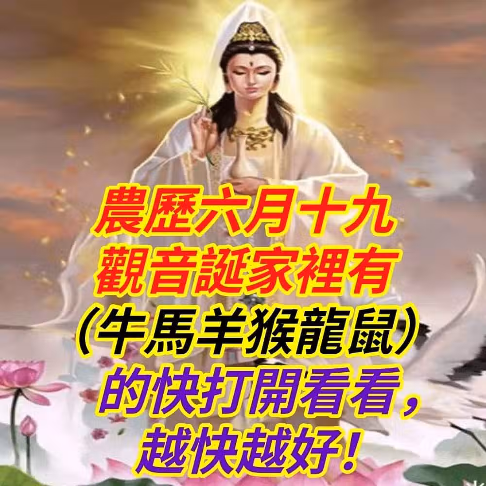 農曆六月十九【觀音誕】家裡有(牛馬羊猴龍鼠)的快打開看看,越快越好!