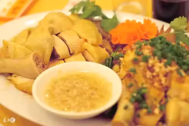 原料:三黃雞1 只,生薑30 克,小蔥10 克