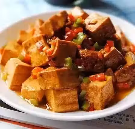 8)倒入適量蚝油,老抽翻拌,使豆腐均勻上色