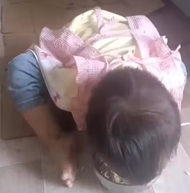 而孩子懂事的令人可憐!她這麼小,很少哭鬧,真的用腳學會了自己喂自己吃飯,還會用腳拿筆,讓父母看了都抹眼淚!