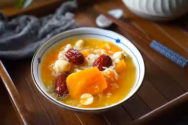食材:地瓜200克、紅棗5顆、蓮子、大米30克