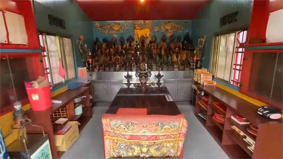 來到三腳渡碼頭,土地公廟已經升空大約1、2米高,因應颱風可能帶來豐沛雨量,廟方事先將宮廟升空,躲避水災,想出這個法子的就是他,宮廟副主委。