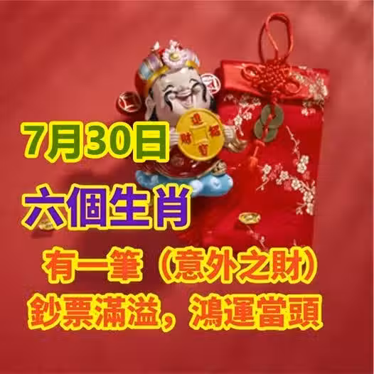 7月30日有一筆(意外之財)的六個生肖,鈔票滿溢,鴻運當頭