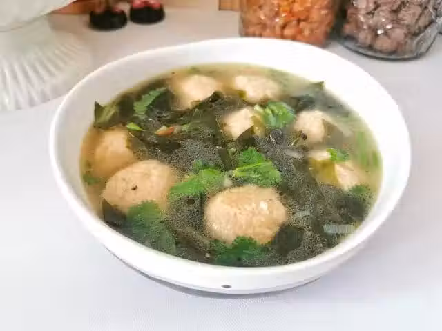 今天分享一道湯,裙帶菜山藥肉丸湯。裙帶菜是一種海藻,含有豐富的碘、鈣、蛋白質和膳食纖維,它有助於預防甲狀腺功能減退,促進骨骼發育和健康,同時還能助消化和降低膽固醇。山藥富含維生素、礦物質和膳食纖維,有益於增強免疫系統,改善消化系統功能,健脾養胃。豬肉含有高質量的蛋白質和必需胺基酸,有助於肌肉建設和修復。三者搭配,多重營養,助力孩子成長!