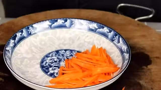 1、首先切點胡蘿蔔,先將胡蘿蔔切成片,然後改刀切成絲;準備一根火腿腸,將火腿腸切成片,再準備一顆上海青,把它掰開,然後準備一把豆芽