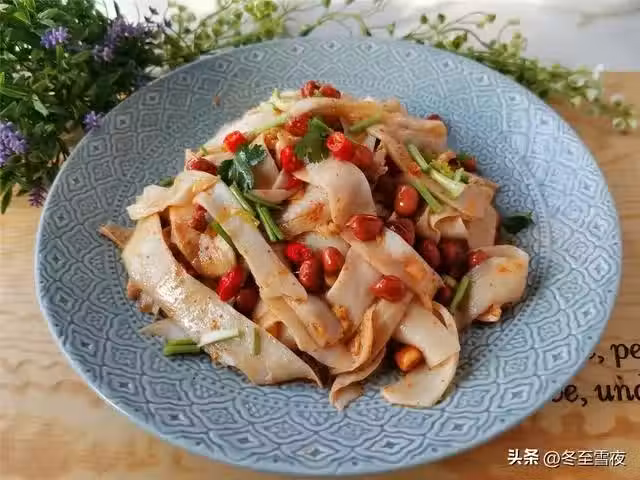 【涼拌杏鮑菇】杏鮑菇400克、花生米1小碗、香菜1棵、小米辣2-3個、油鹽適量、香油1湯匙、蔥1段、大蒜3瓣、生抽2湯匙、白糖半湯匙、香醋2湯匙、辣椒粉半湯匙、雞精1茶匙、