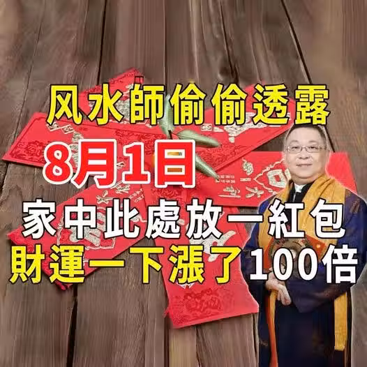 風水師偷偷透露:8月1日在家中這個地方,放一個紅包,竟能讓財運100倍暴漲,好運一路旺到底!