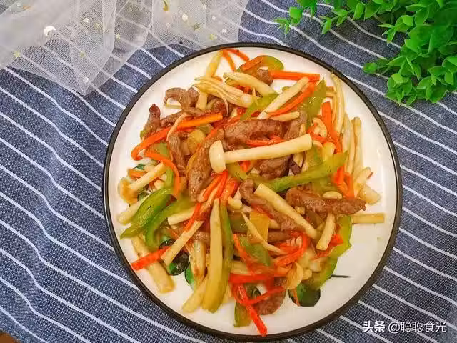 【食材】牛肉,海鮮菇,胡蘿蔔,青椒,蔥,姜,蒜,生抽,鹽、蚝油,胡椒粉,澱粉