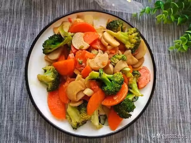 【食材】西藍花、杏鮑菇、胡蘿蔔、大蒜、鹽、蚝油