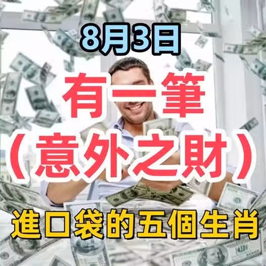 8月3日開始有一筆意外之財進口袋,恭喜五個生肖鈔票滾滾來