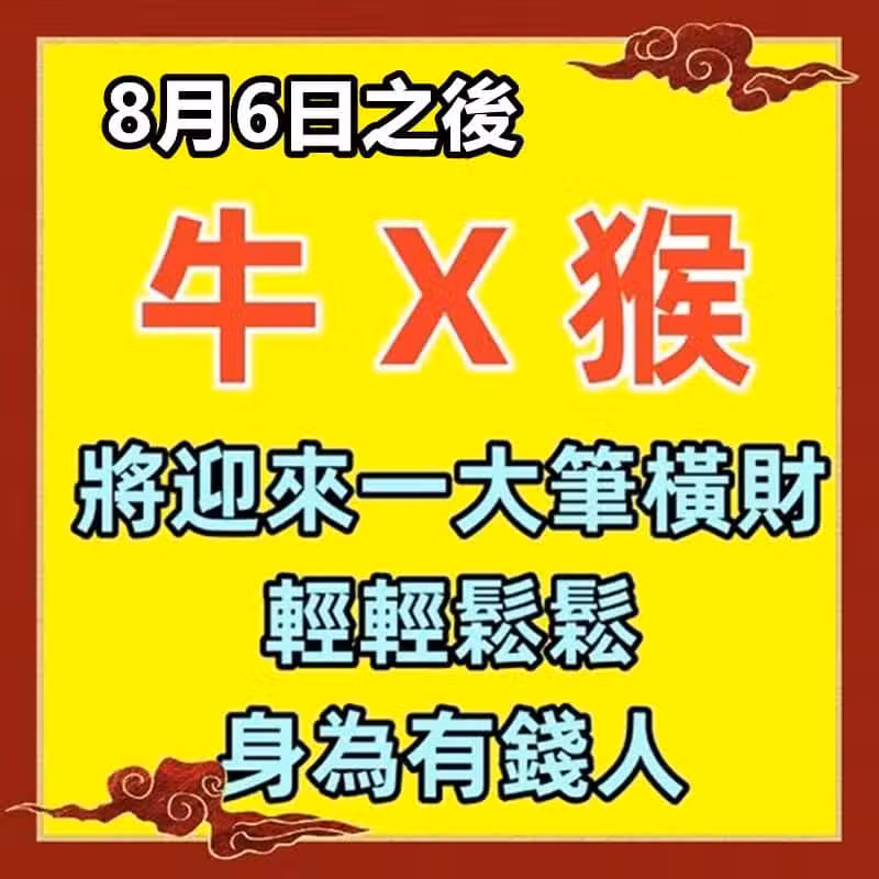 8月6日之後(牛、X、猴)將迎來一大筆橫財,輕輕鬆鬆身為有錢人