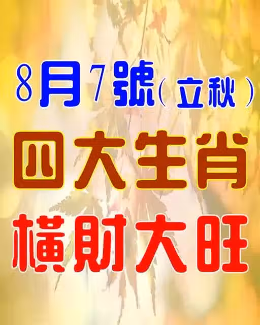 立秋(8月7號) 四生肖 橫財大旺