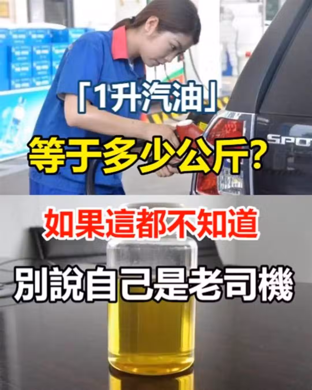 「1升汽油」等於多少公斤? 如果這都不知道,別說自己是老司機