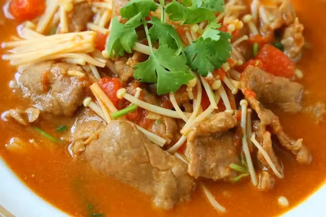 製作配料:牛肉1塊 生抽2勺 老抽1勺 蚝油1勺 澱粉1勺 小蘇打適量 白鬍椒粉+姜粉1小勺 金針菇1把 番茄2個 蒜末2個 鹽1勺 番茄醬1勺