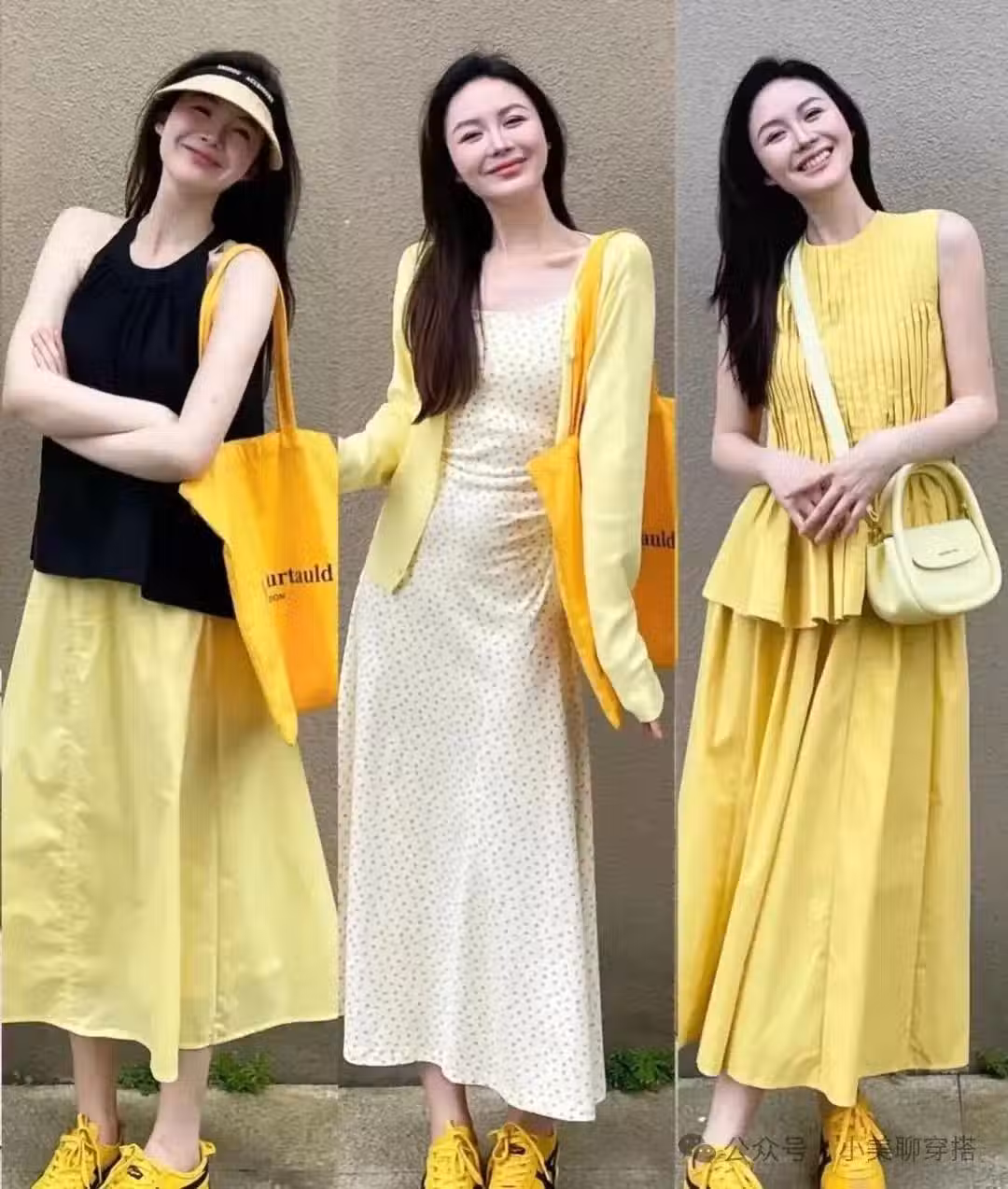 鵝黃色就比較柔和一些,顯白的效果也更好,我們可以選擇小面積的點綴,更活潑可愛。