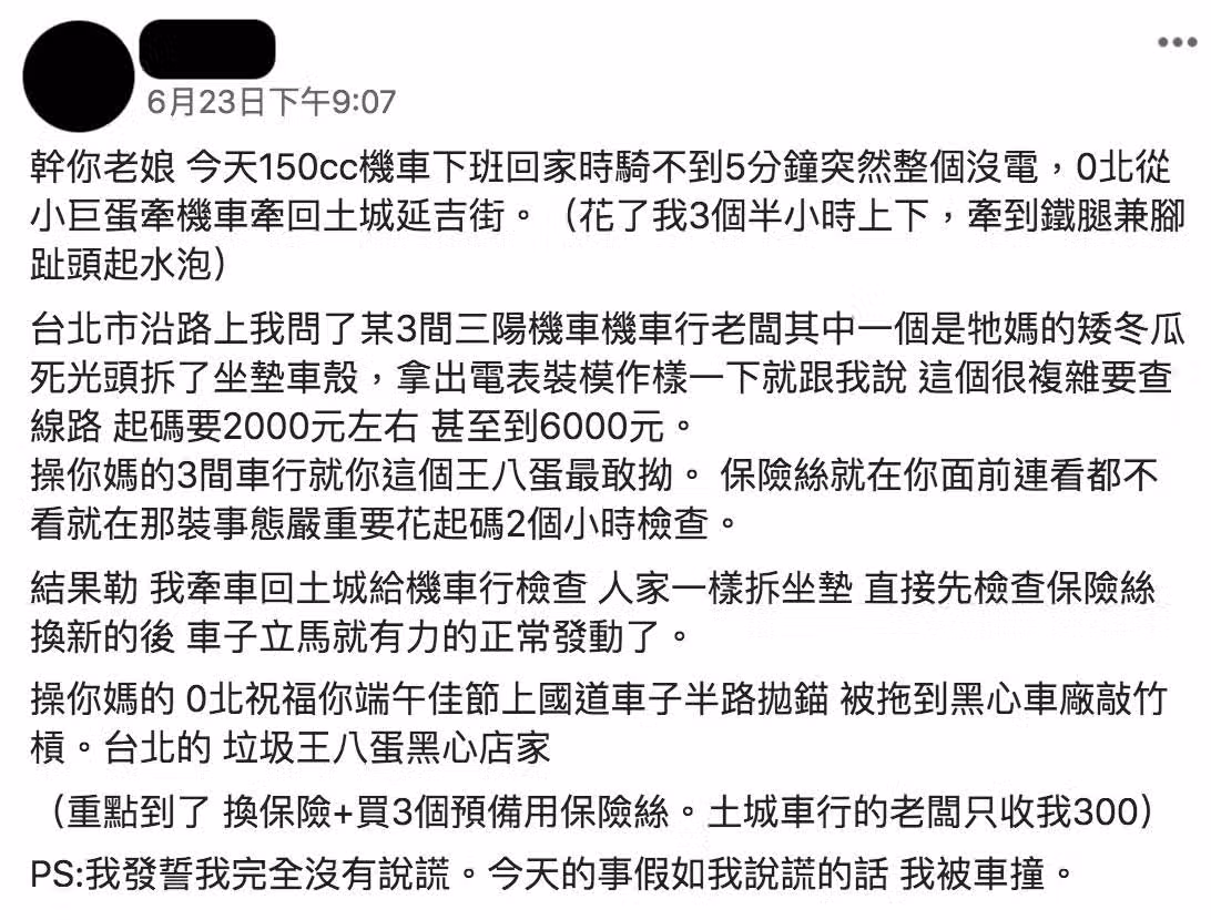 貼文一出也引來網友熱烈討論,大家紛紛留言表示「不熟的機車行真的不要隨便進」、