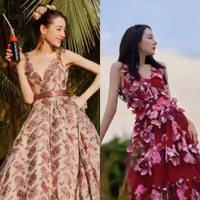 如濃顏系代表迪麗熱巴,她的五官就很立體,面部留白少、輪廓清晰,給人的感覺就是很有力量之美。穿上大花色的裙子,五官更加立體精緻了,簡直眼前一亮。