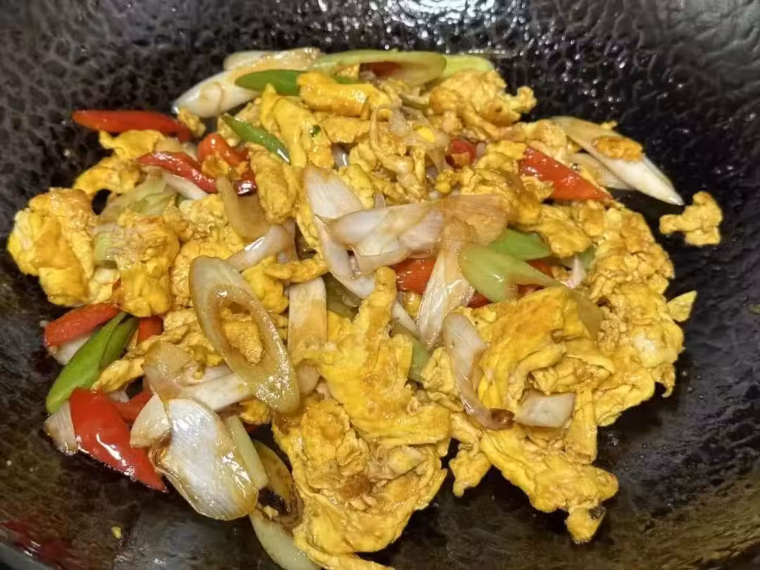 7、居然沒有想到,這樣爆炒的鵝蛋真的超級下飯,簡直絕了,尤其是大蔥超級入味好吃!沒有鵝蛋的可以換成雞蛋炒也好吃!