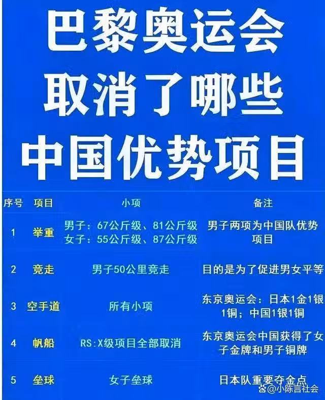 奧運取消了六個大項目,受損最嚴重的當屬中國和日本!
