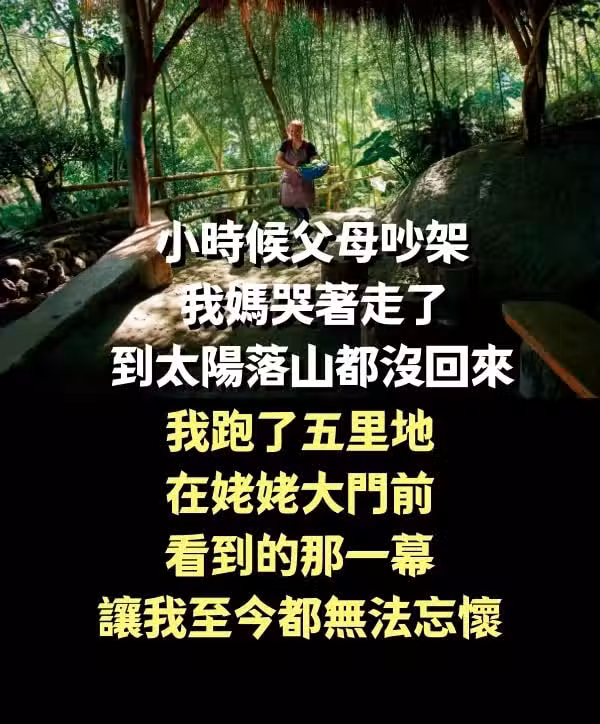 小時候父母吵架,我媽哭著走了,到太陽落山都沒有回來,我跑了五里地,在姥姥大門前看到的那一幕,讓我至今都無法忘懷。