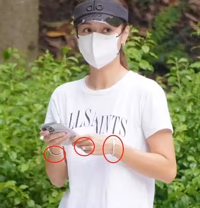 但見到媒體拍攝,她又摘掉了結婚戒指避嫌。