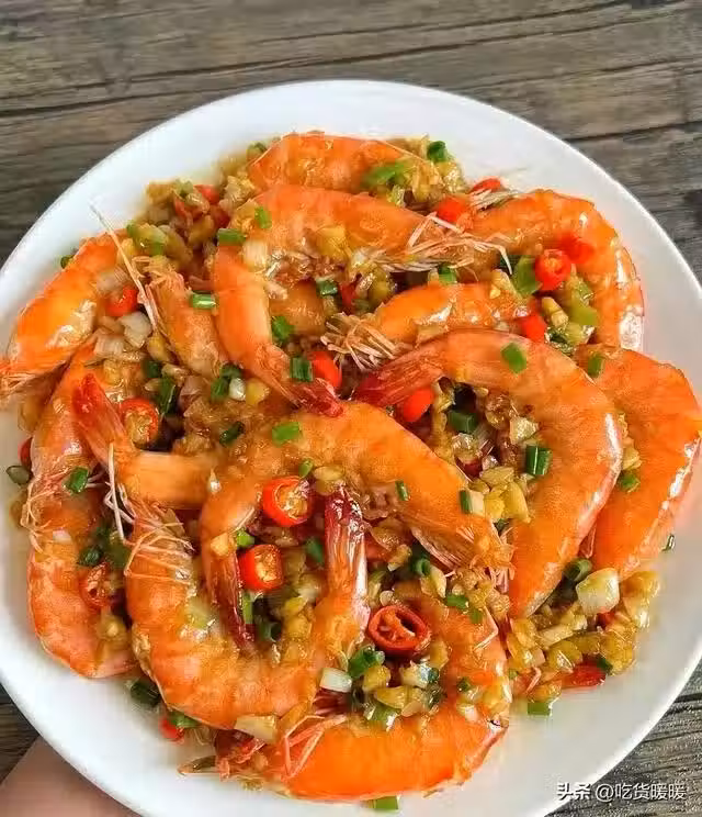 蝦去頭去蝦線背上花1刀1勺料酒腌制10分鐘 蒜末、小米辣、蔥 用剪刀斜著剪開背部輕輕的一拖就蝦線出來了少許熱油倒蝦炒變色盛出熱油爆香蔥、蒜、小米辣2勺生抽 1勺蚝油、少許糖 撒上蔥花出鍋。