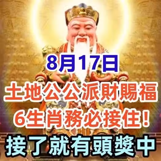 8月17日:土地公公派財賜福,6生肖務必接住!接了就有頭獎中!
