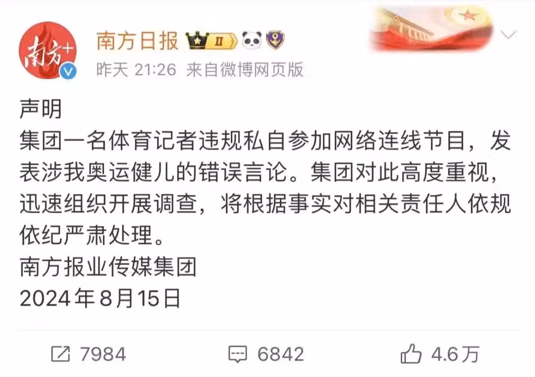 即使他再嘴硬,也改不了他不尊重全紅嬋的事實。
