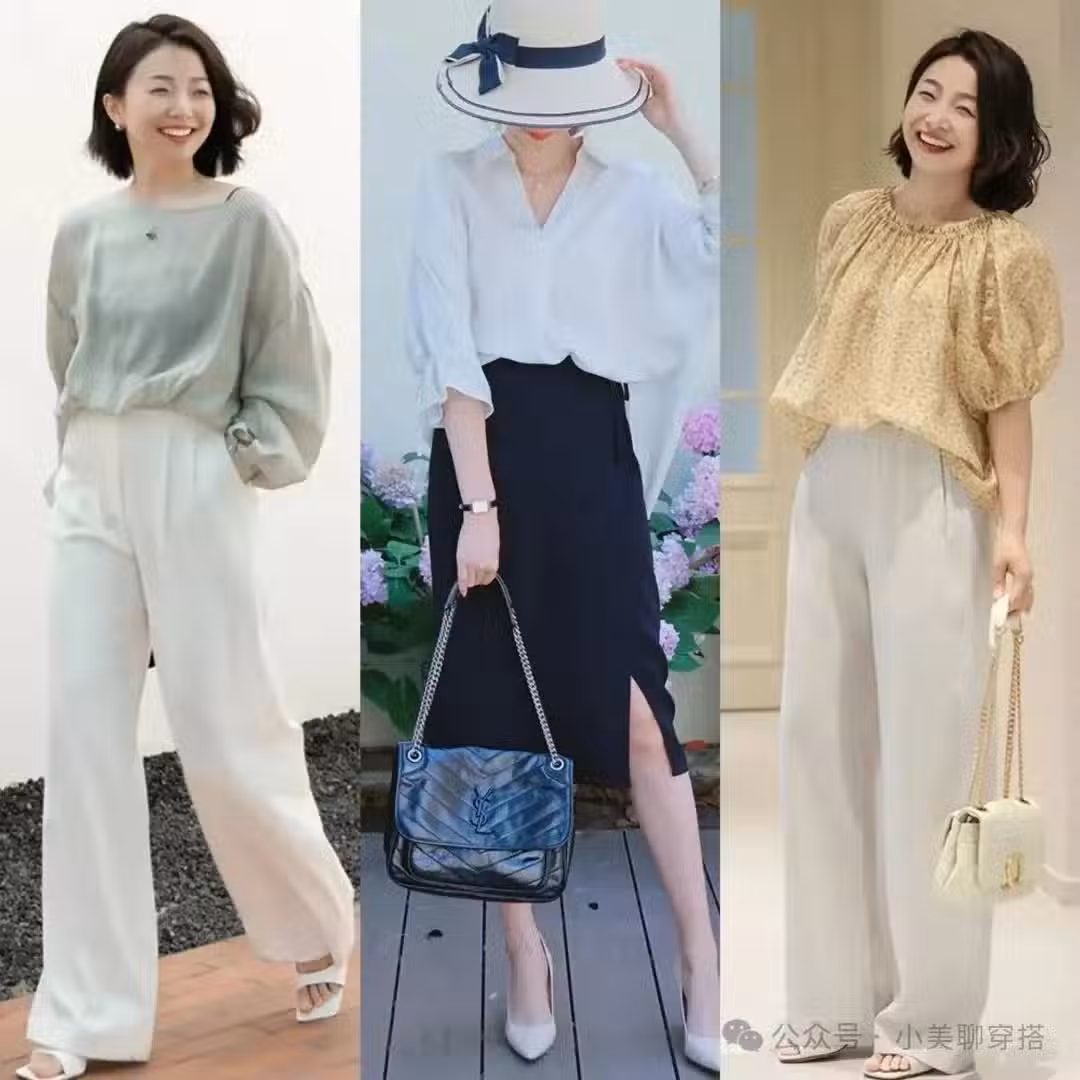 夏天40+女生鬆弛感穿搭示範,簡約高級又減齡,每一套都好好看