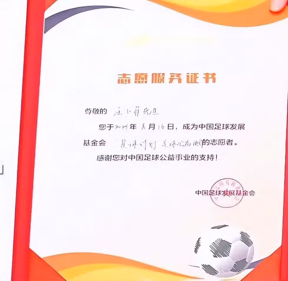 從中國足球發展基金會所頒發的證書來看,上面寫著的是汪小菲一個人的名字,感謝他對中國足球公益事業做貢獻。