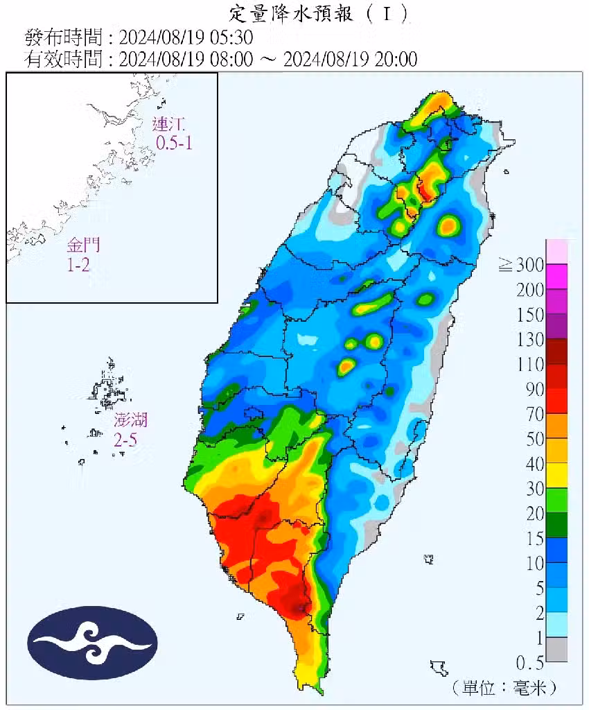 少部分則有局部大雨,尤其是南部可能出現局部短延時豪雨。