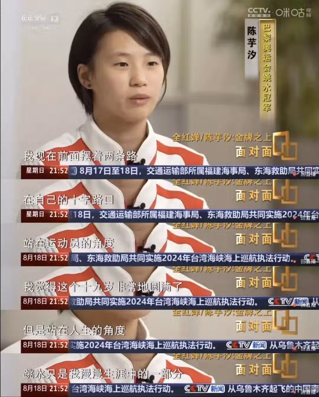 其次,倆姐妹的感情與格局都異於常人,尤其全紅嬋,我這次只重點先提全的。 感觸最深的對話是這一段。 記者:「如果(要)你見好就收,可能嗎?」 全紅嬋:「不可能,為什麼要見好就收?因為你還可以更好,可以一直好下去。」