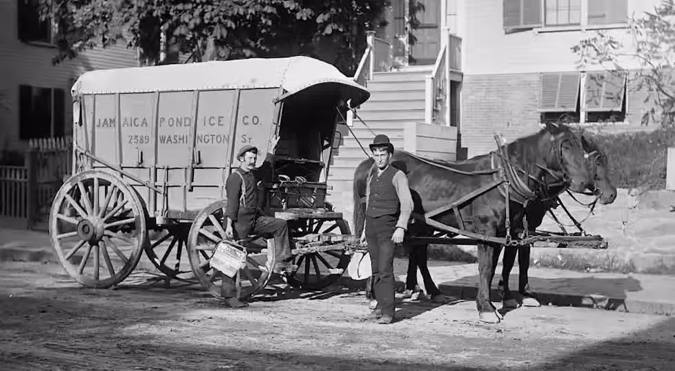 為了保證冰塊能夠準時送到目的地,他們每天凌晨,都要駕著馬車去製冰廠運冰。