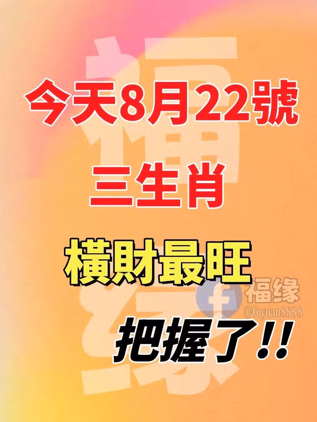 8月22號 三生肖 橫財最旺 把握了 !