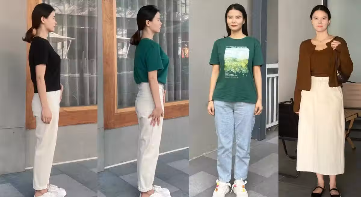 比如說↓下圖的低腰緊身牛仔褲。不僅很容易暴露身材的各種缺點,還極容易顯得上半身與下半身比例失調,造成笨重臃腫感。