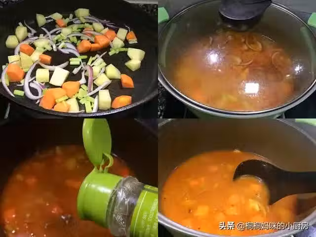 5、另外起鍋用少許油炒一下土豆、胡蘿蔔、洋蔥和芹菜。