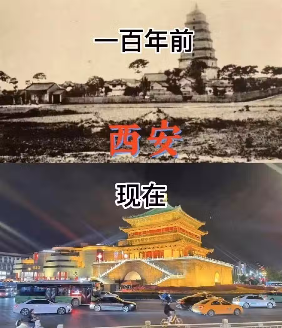 西安的老照片中,古老的建築和靜謐的街道透露出這座千年古都的歷史厚重感。如今的西安,現代化的城市面貌與歷史遺蹟交相輝映,鐘樓在夜晚的燈光下顯得格外雄偉壯觀。西安,這座歷史文化名城,在新時代煥發出了新的光芒,吸引著無數遊客前來探索。
