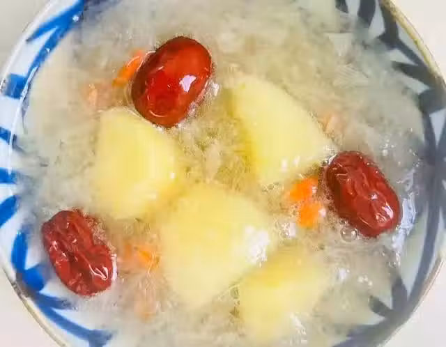 銀耳蘋果紅棗湯,清甜爽口,滋潤養膚,滿滿的膠原蛋白,好喝又實惠,一周喝三四次,皮膚變得白裡透紅,比什麼護膚品都管用。