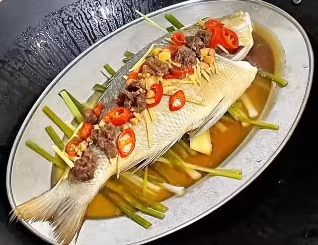 4、控制好蒸魚的時間,蒸的時間過長,肉質就會太老~具體看魚的大小,例如1斤以下的,大火燒開蒸鍋中的水蒸5-6分鐘,1斤以上的可以增加到8~10分鐘