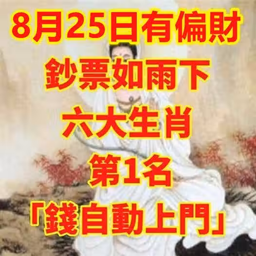 8月25日有偏財,鈔票如雨下的生肖! 第1名「錢自動上門」