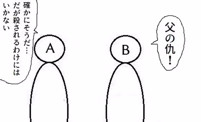 C:「呵呵呵……其實B的父親是我殺的,而且還是我嫁禍給A的!」