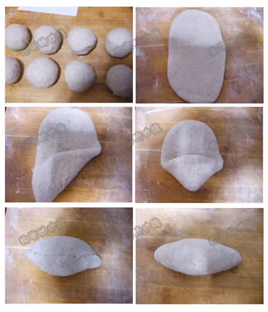 -原料:高筋粉200g 黑麥粉50g 白糖12g 鹽4.5g 水158g酵母3g -做法:1、直接法,所有材料混合揉至擴展,注意鹽和酵母不要在一起。 2、蓋上保鮮膜放在溫暖處發酵至2倍大,分成8份,滾圓。 3、中間發酵15分鐘,排氣,再次滾圓後整橄欖形,表面噴水裹上芝麻,排入烤盤。 4、烤箱裡放一小碗熱水,放入烤盤,麵包胚發酵至2倍大。190度上下火15-20分鐘。