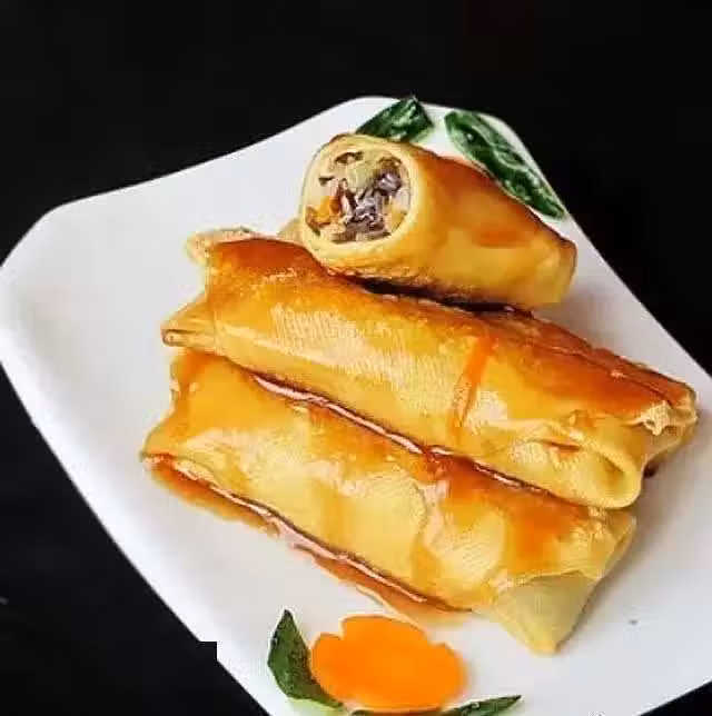4、用上湯加入素蚝油調味勾芡,淋在擺放好的豆皮卷上便成。