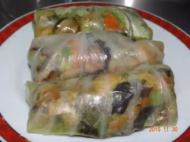 材料:高麗菜5片、干香菇2朵、豆包1片、芹菜2跟、紅蘿蔔20g、黑木耳1大片