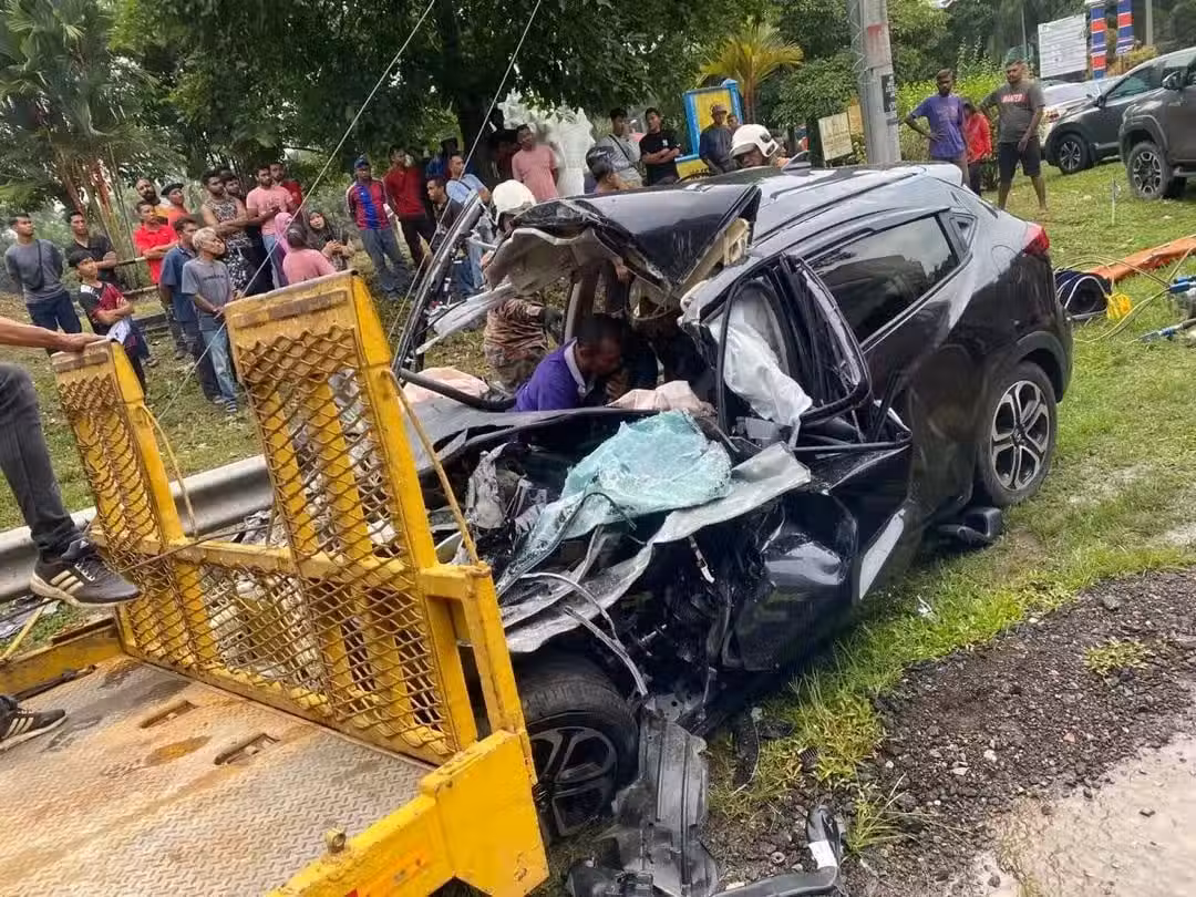 根據面子書專頁KHI(Kluang Hari Ini)上傳的現場照片,女死者的轎車在意外發生後,車頭冒煙,有多位民眾撐著傘,協助搶救女死者。