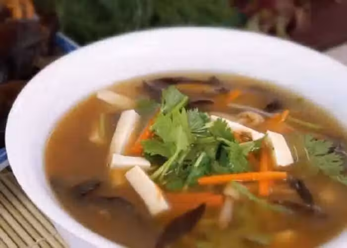 木耳(少許)、豆腐(1小塊)、竹筍(1小支)、香菇(4朵),紅蘿蔔(1條)、金針(1/2小碗)、香菜/九層塔(少許)