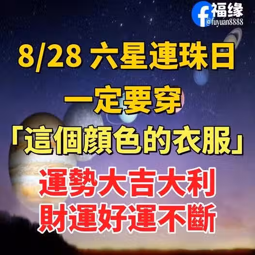 明天8/28六星連珠日,一定要穿「這個顏色的衣服」運勢大吉大利, 財運好運不斷!