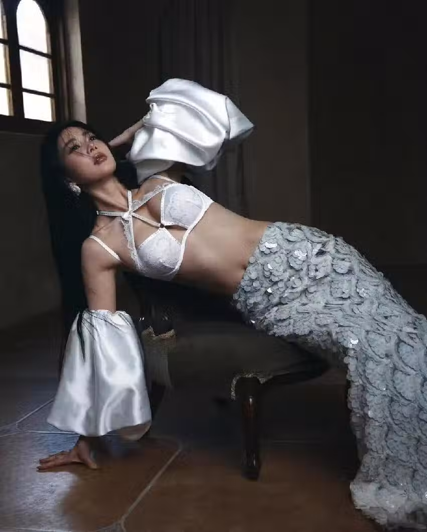套上波光粼粼的亮片長裙,Clara演繹宛如美人魚的造型。