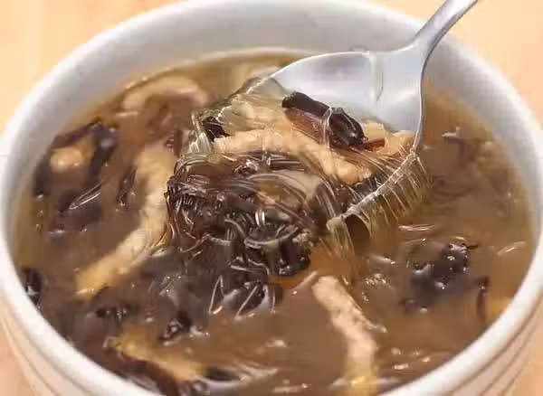 1、將材料泡軟,及切片的姜,放入水中(看你要喝多少)+材料煮沸,再加入天然味素少許就ok了。